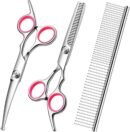 This all-in-one set includes straight scissors for general cutting, curved scissors for shaping, thinning shears for blending, and a grooming comb to detangle and smooth fur. Whether you’re a professional groomer or a pet parent, this set offers total grooming control with comfort and confidence.